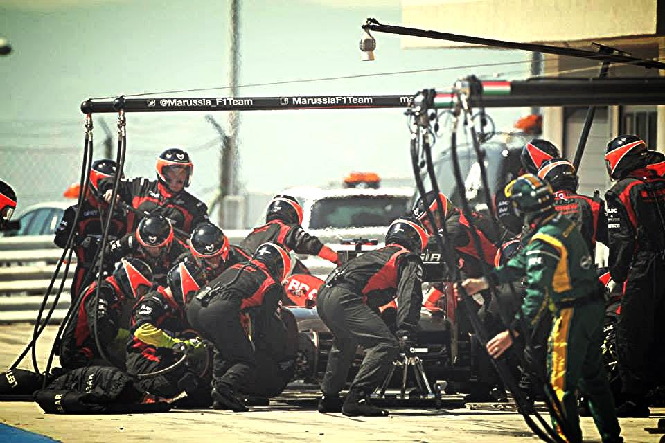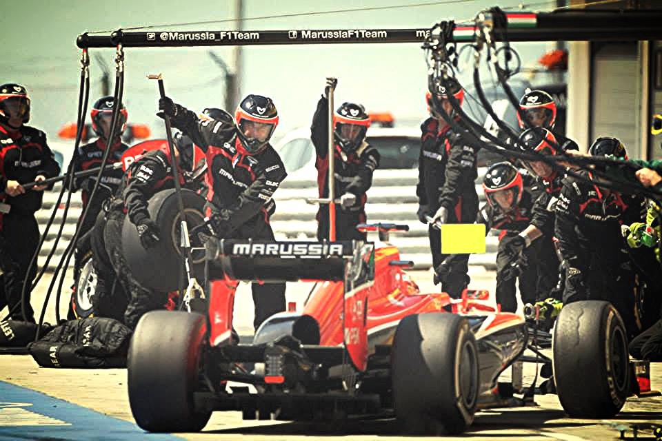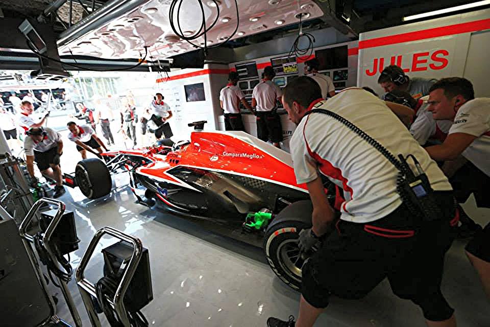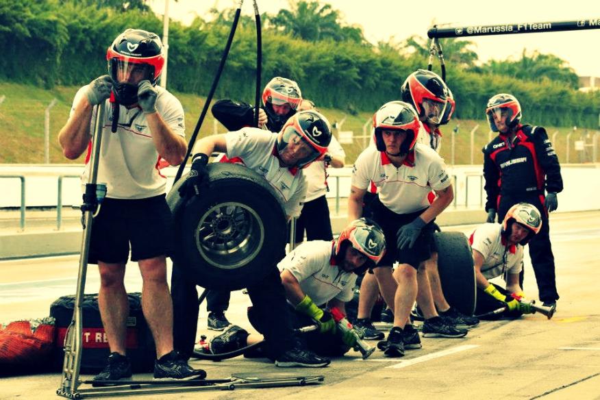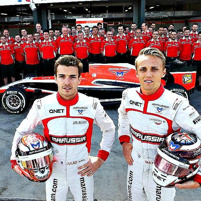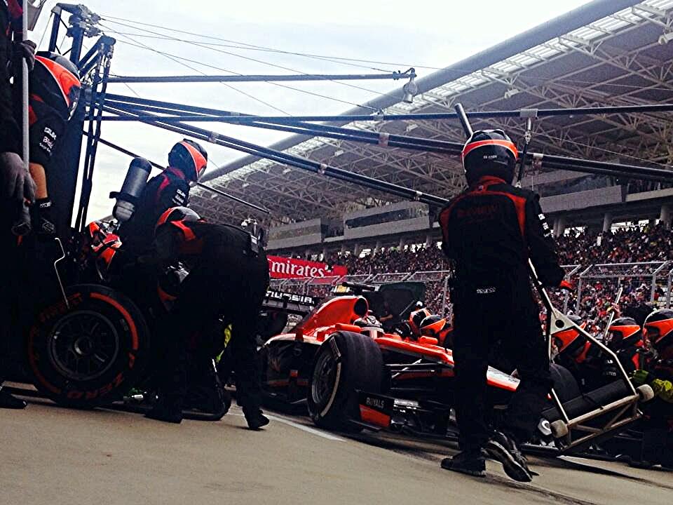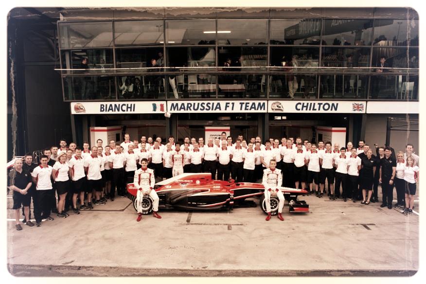 Jules Bianchi and the fab pit crew at MARUSSIA F1