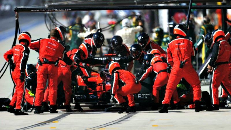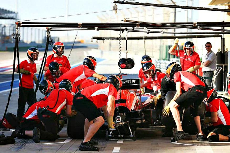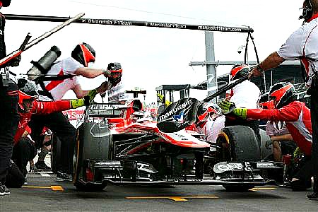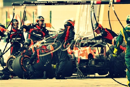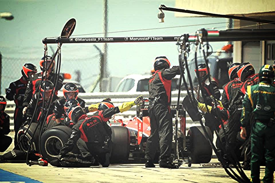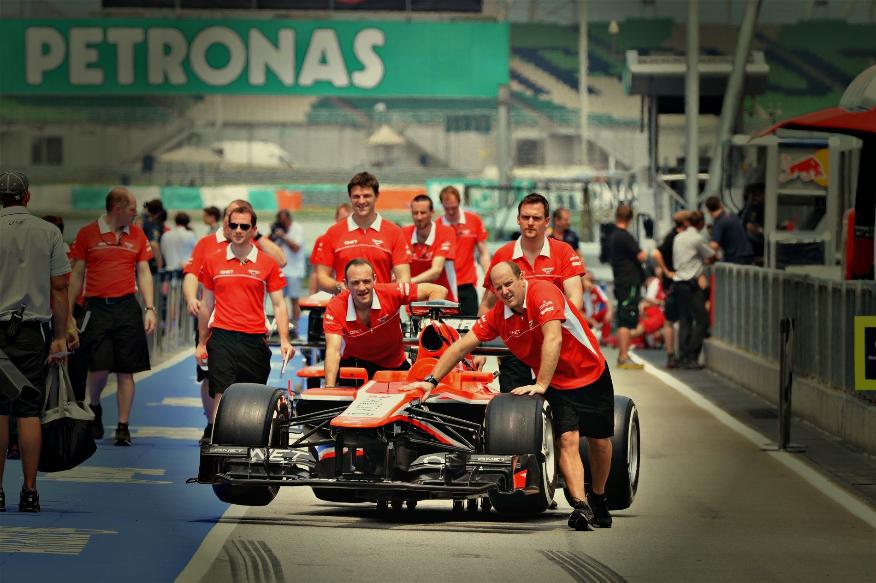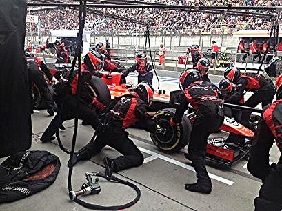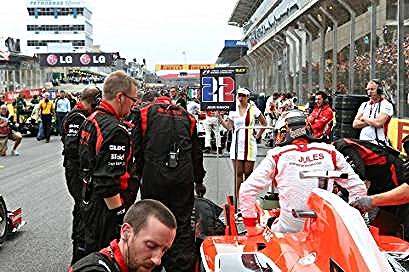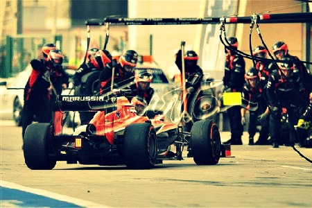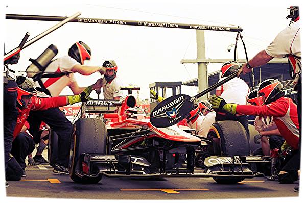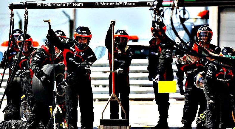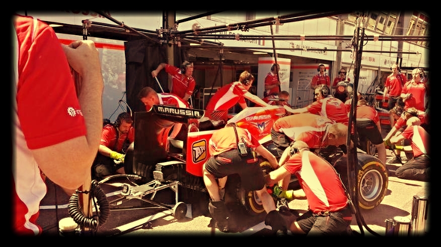 Jules Bianchi and the fab pit crew at MARUSSIA F1