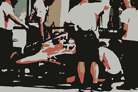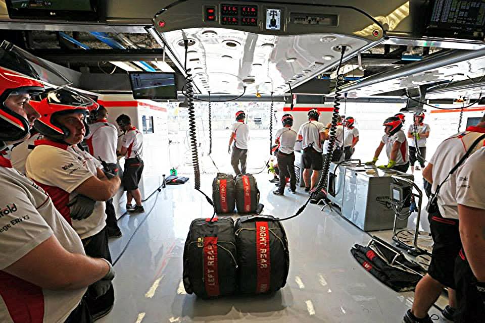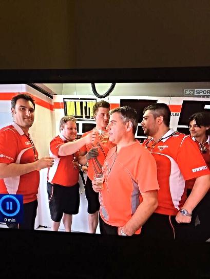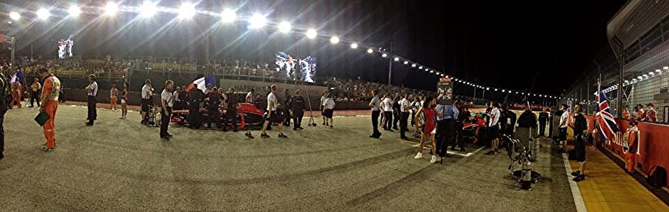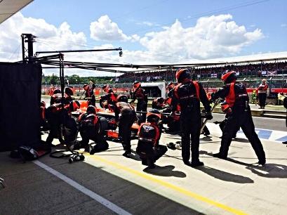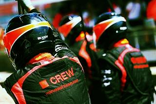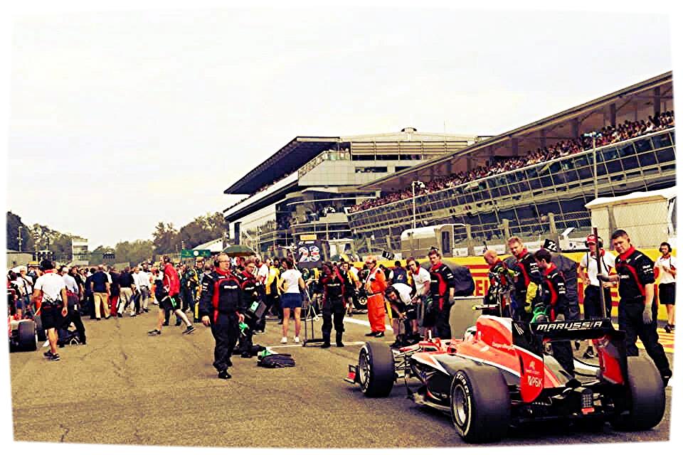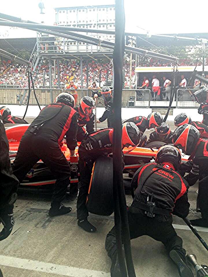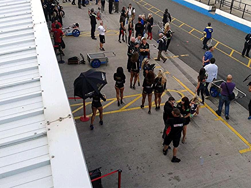 Rich and Marussia F1 Pit Crew liaising with the local pit girls...Monza! Photo: Jim Christie