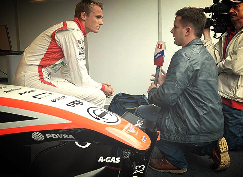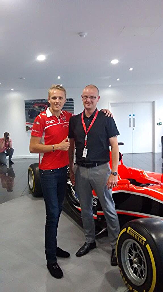Max Chilton of Marussia F1 and Lee Tuffin of Rusportiva, Banbury HQ June 2014 hosted by @CarCliq on Twitter