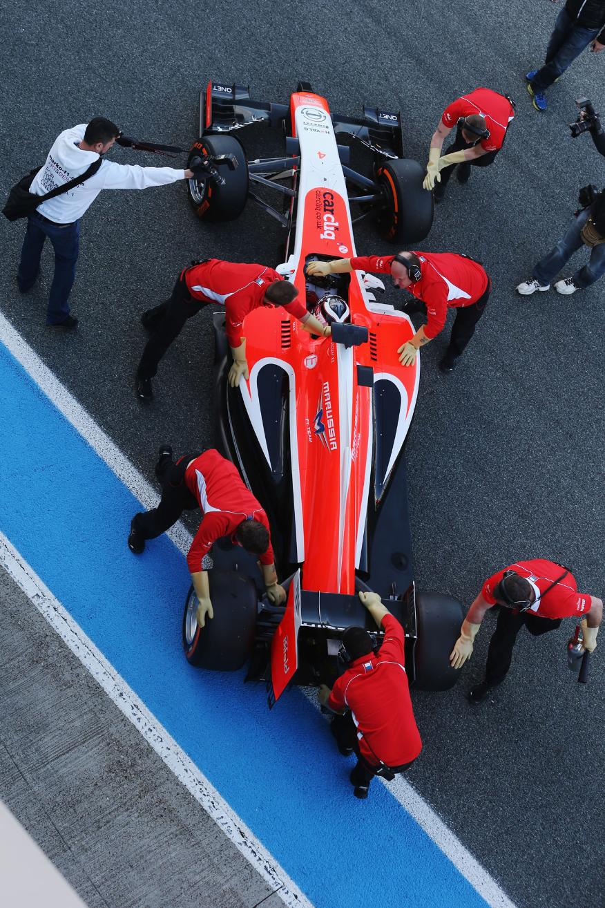 Max Chilton and the new Marussia F1 MR03 at Jerez testing January 2014: a gutsy return for the Team led by Graeme Lowdon #fab ; )